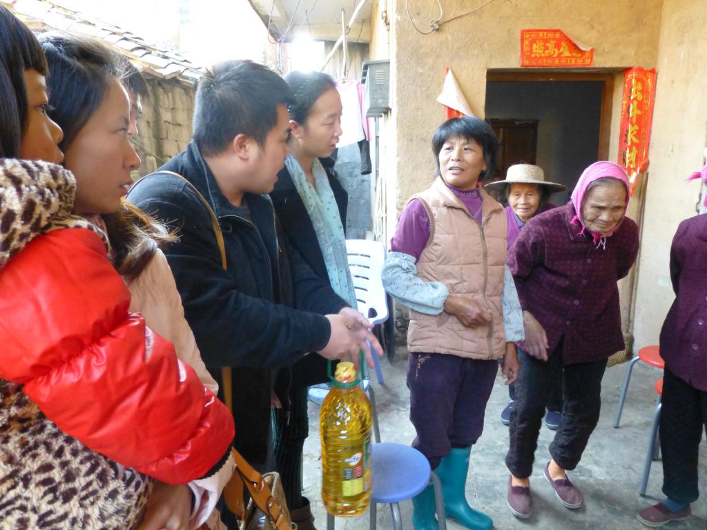 敬老是中华民族的传统美德。古人云:“老吾老以及人之老。”千百年来,中华儿女也用自己的言行不断充实、丰富着敬老思想。荔城街棠夏村的老龄人口较多,其中有很多是留守老人,经济也比较困难。我系教工党员通过调查事先确定好了慰问对象,于12月20日下午开展了慰问老人的活动,租车到老人家拜访,与老人们谈心交流,带给他们一些快乐,并且送老人一些生活必需品,如:米、油等。我系教工党员计划开展“结对子,跟踪帮助慰问活动”,一方面关爱有困难的人,给他们送去一份温暖与关爱;另一方面,做好党员模范带头作用,带动更多人参与到扶贫、敬老爱幼的活动中。