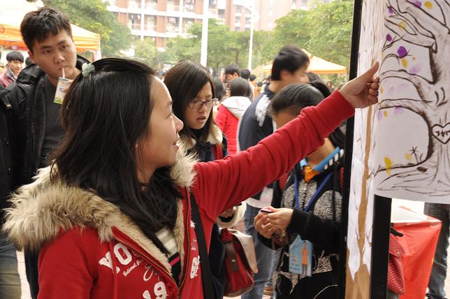 宣传版前,同学们络绎不绝,纷纷前来观看雷锋事迹与安全知识;并且染上五颜六色的颜料将手模按到画有树干的“大树”上,以示支持雷锋精神和安全教育的宣传。更值得一提的是,刘苗老师和杨思佳老师在百忙之中抽空,参加我们的活动。在活动的尾声,老师和同学们在五彩缤纷的大树上按下手模,为本次活动画上圆满句号。