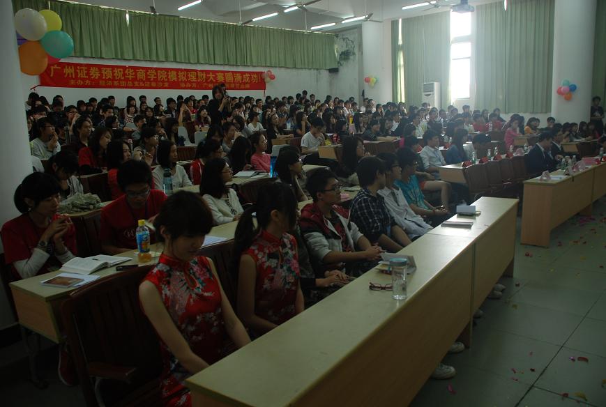 2012年4月10日下午两点,由经济系团总支主办的一场模拟炒股理财大赛讲座在励志楼B308火热进行。