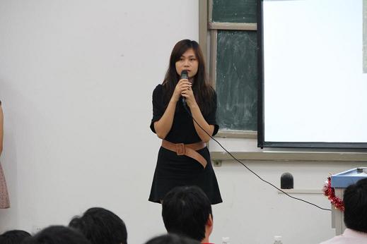 朱亿维老师则用轻松幽默的语言阐述了身为大学生应该拥有的东西。我们本身就是一个励志故事。他从自身的经历——十点半路灯下看书,十二点爬山登高,得出克服恐惧,迈出第一步,豁然开朗的启发;在大学,喜欢做什么和应该做什么就是我们的价值体现。他还道出了社会责任感,在随心所欲之际,亦不能只要快乐而抛弃负担,积极进取,未来属于大家。接着他以李敖资助慰安妇的事例说明每个人都有苦处,我们要学会体谅,人生可贵犹如女人那一生的婚纱照。