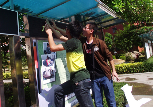 为营造干净整洁的校园环境,11月12日早上,学生自发组织对校道旁及饭堂门口的宣传栏进行卫生清洁。同学们拿着抹布、刷子、扫把等清洁工具耐心地擦拭宣传栏上的灰尘、污迹。同学们工作积极认真,细致入微,把宣传栏擦拭得一尘不染,以自己的实际行动打扮校园环境,为评估献出自己的力量。