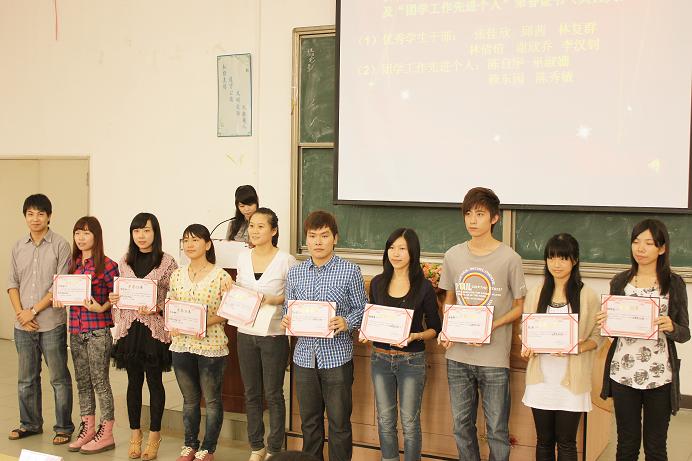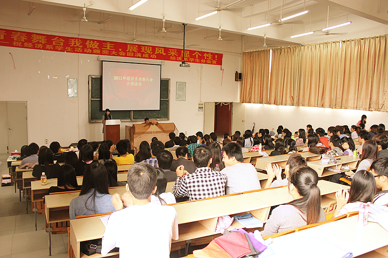 2011年11月8日14时30分,经济系于励志楼A208教室召开2010-2011学年表彰大会。经济系主任曾令华教授,学工助理黄国富老师,团总支书记杨思佳老师,学生会指导老师郭锦荣老师,11级辅导员黄秋铭、黄素贞、廖小安老师出席本次大会。