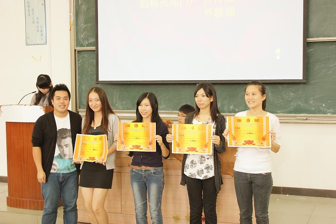 在掌声中,在拍照留念中,2011年广东商学院华商学院经济系先进群体及个人表彰大会圆满结束。大会给我们展示了经济系过去一年的荣誉和成长,也给我们提出了更高的要求:发展壮大经济系。让我们一起为未来的经济系奋斗吧!