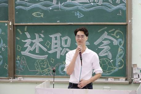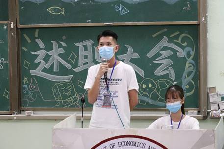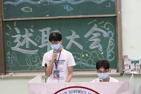 接着,大会进行了有趣的看图猜成语互动环节。每位同学都开动脑筋积极地参与进来,气氛高涨。除此之外,还有五位常委和部长上台进行比划猜词游戏,让我们真实感受到他们亲切又可爱的一面。