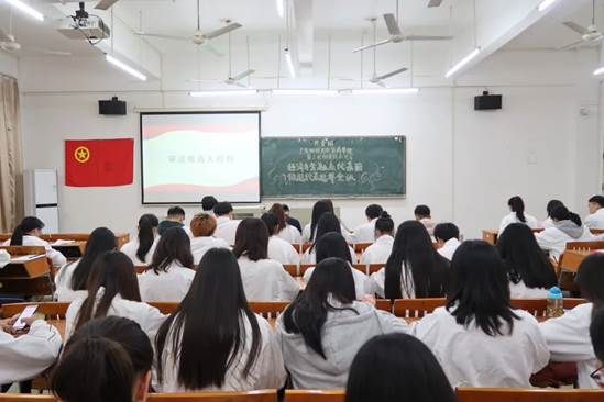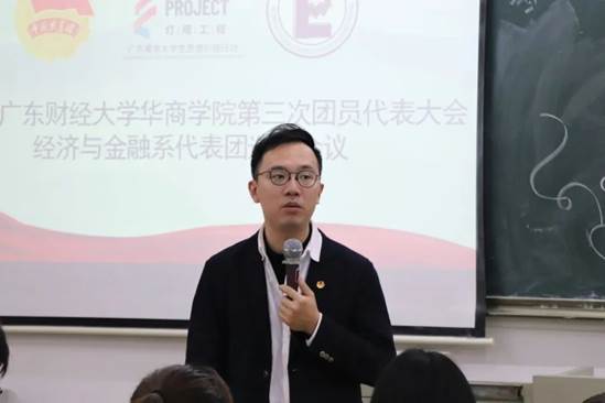 为深入贯彻落实习近平新时代中国特色社会主义思想,更好的执行学校工作,牢固地树立起“全心全意为同学服务”的宗旨意识,汇聚青年智慧,凝聚青年力量。共青团广东财经大学华商学院第三次团员代表大会经济与金融系代表团选举会议于2020年12月3日17:45在励志楼C304召开。校团委员会常委宋元跃,综合专业学生党支部书记类康列席会议,经济与金融系全体候选人参加会议。会议由经济与金融系团总支秘书长黄洁主持。