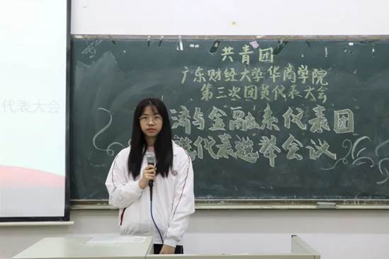 共青团广东财经大学华商学院第三次团员代表大会经济与金融系代表团选举会至此圆满结束,希望各位获选的代表能够履行好团员代表的职责和义务,起到先锋模范作用,坚持“从学生中来,到学生中去”全心全意为同学服务的理念,砥砺自我,奋勇前进,成为新时代的主力军。