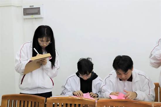 随后,由监票人唐嘉欣、谭俊楷向各位候选人发放选票。
