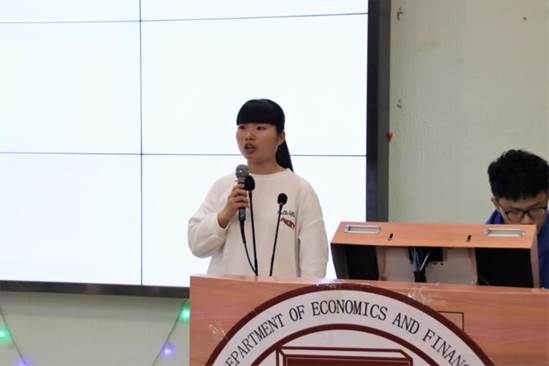 主持人介绍莅临本次讲座的嘉宾,经济与金融系团总支副书记黎浩俊、徐凤明,团总支秘书长黄洁,学生会主席团成员李聪、董凯泳,记者团团长张晓琳,团学·记各部门负责人及本次讲座主讲人茅小怡。