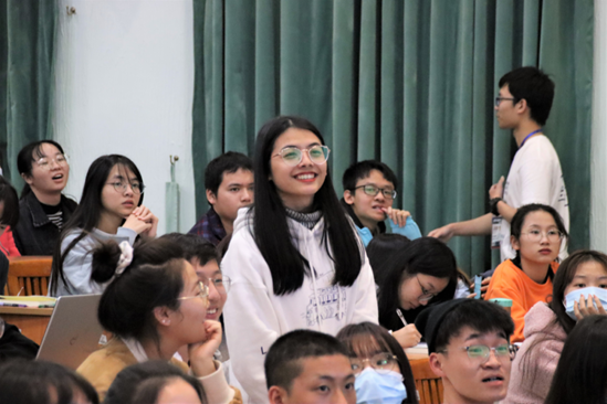 茅小怡师姐演讲完毕。为使讲座现场气氛更轻松愉悦,工作人员设计了看图猜成语的互动环节。回答的正确的观众,即可获得精美礼品一份。同学们非常积极热情地举手回答。