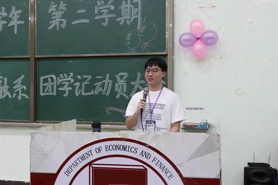 黎浩俊师兄上台发言,他表示历经一个轻松愉快的寒假后,很开心再次在新学期与E家人聚在一起。借此大会,师兄对学生干部提出新学期的新展望新憧憬,与大家共勉!他认为新学期中我们要学会与时间做朋友,合理规范时间;其次我们要多给自己一些信心与鼓励,相信自己的能力的同时还要拿出自己应有的工作态度;还要以积极乐观的心态对待工作,在提高工作效率的同时又可提高处事能力。最后,黎浩俊师兄祝愿大家在本学期可以收获满满,经济与金融系团学·记一路向前。