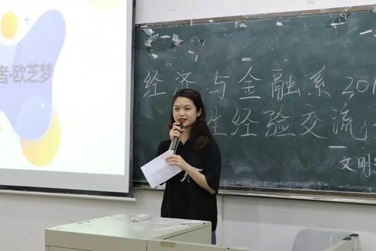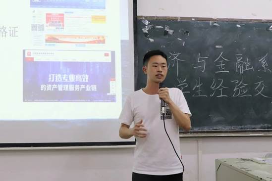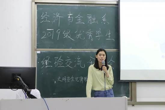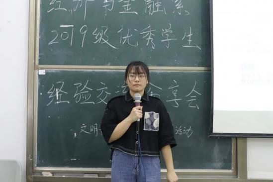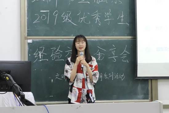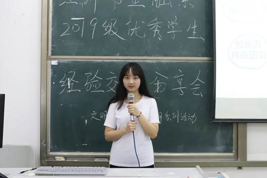 19经济与金融3班詹美琳同学从绩点、个人规划、抗压能力、时间分配四个方面向同学们分享经验,对于大学她有着自己的想法及规划,不能陷于学习及生活的迷茫,择优参加活动,在实践中磨练自己。虽说技多不压身,但人的精力有限,找准有针对性的学习与生活往往更精致。
