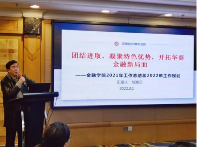 刘湘云院长以“团结进取、凝聚特色优势,开拓华商金融新局面”为切入点,从以下七方面进行总结和规划。