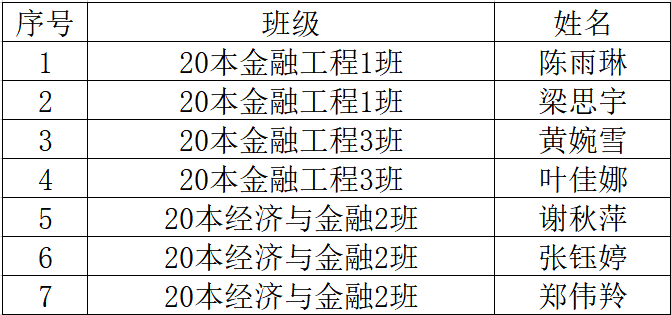 为帮助20级专升本、21级学生尽快适应新校区的生活,同时能更好地与学院辅导员对接工作,根据学院新生班主任助理选拔办法,本着公开、公平、公正、竞争、择优的原则,经学生递交申请、资格审查与面试等程序,拟录用陈雨琳等7名同学为金融学院助班,现予公示。