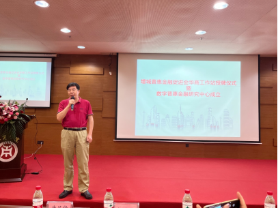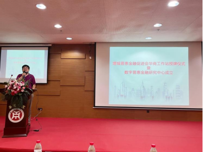 增城普惠金融促进会华商工作站授牌仪式暨数字普惠金融研究中心成立会议于2022年6月28日上午10:20分在图书馆一楼报告厅举行,会议由金融学院常务副院长王汉章主持。