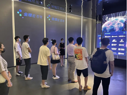 抵达企业后,金蝶集团华南区经理张锦涛先生对来访师生表示热烈欢迎,并且带领同学们到金蝶体验馆参观学习。同学们深入了解金蝶企业发展历史和企业文化,参观“财务管理新世界”展厅,体验金蝶大数据云平台、智慧工厂、财务机器人、财务共享中心等产品,感受到在人工智能时代下财务管理模式即将迎来的发展和变化,以及金蝶科技改变未来、打造未来的企业管理美好愿景的决心与实力。