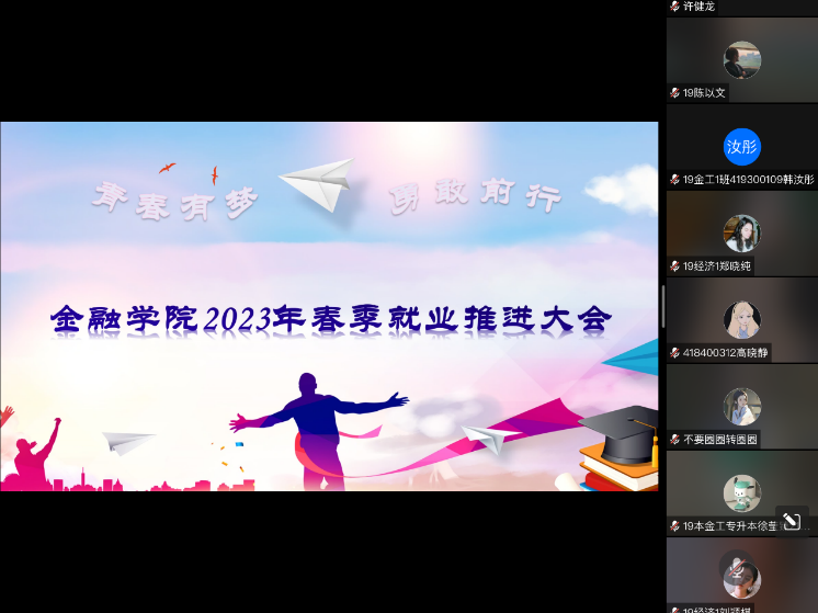 为贯彻落实学校有关就业工作要求,促进金融学院2023届毕业生就业工作开展,面对当前严峻的就业形势,结合学院实际情况,2023年3月10日下午,金融学院在励志楼C408以线上线下相结合的形式召开了2023年春季毕业生就业推进大会。