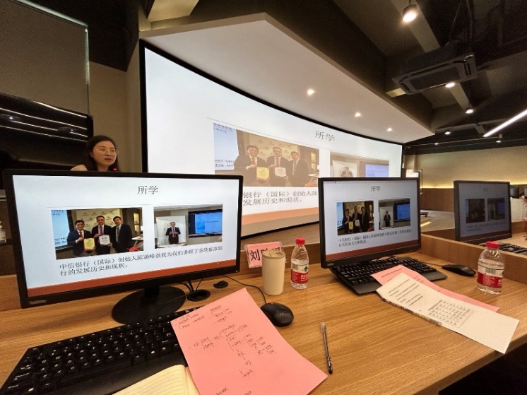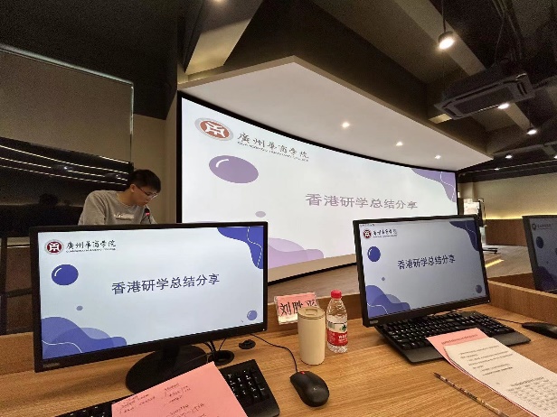 金融科技系谢一颗副主任,分享了香港研学全程视频,并从“所学”、“所访”、“所获”三个方面总结了研学一行。赴港研学学生代表潘健鋆、卢潇钧总结发言