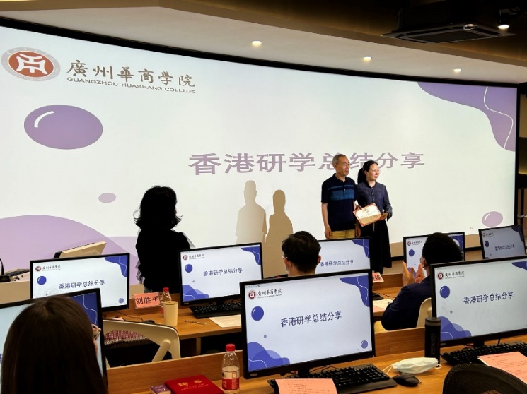 张纯威副院长为香港研学优秀教师聂婷颁奖,邱会锋主任为优秀学生潘健鋆、卢潇钧、廖卓颖、姚绮晴颁奖。