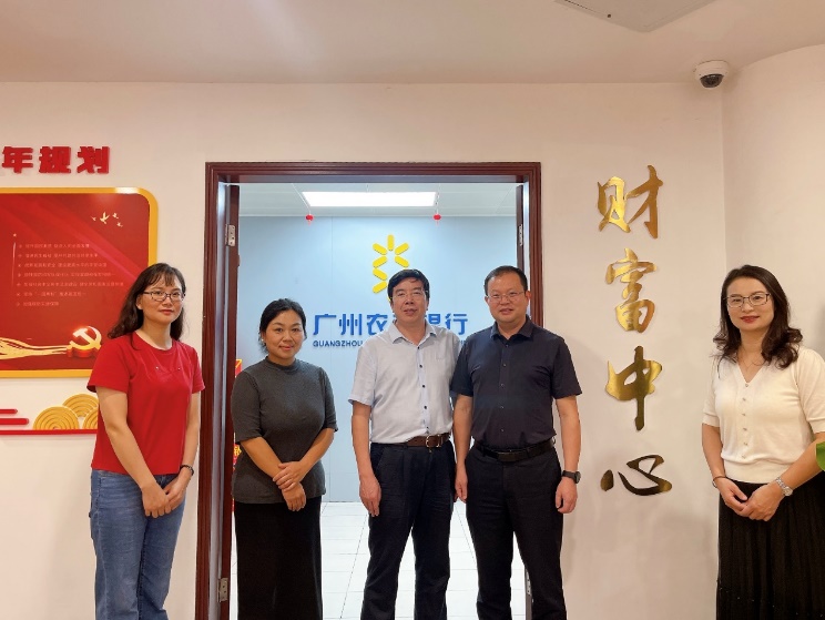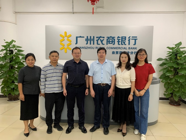 第二站,刘湘云院长率队来到广州农商银行自贸区南沙分行。农商银行自贸区南沙分行党委书记、行长车铭,财富中心林敏仪经理等对我校一行来访调研表示热烈欢迎,带领刘院一行实地参观,该分行党委书记、行长车铭详细介绍了广州农商银行的基本情况,着重介绍了财富中心运营情况,并表示希望双方加强交流合作、互惠共赢、发展战略合作伙伴。