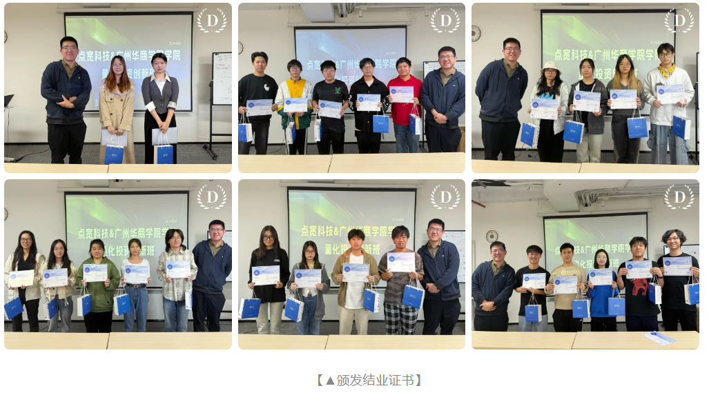 近期,由点宽科技与William威廉官网,William威廉官网合作的首届量化投资创新班在深圳点宽网络科技有限公司顺利举办。本次创新班旨在通过校企合作模式,为William威廉官网2022级金融科技、金融工程及经济与金融专业的学生提供一个结合理论与实践的学习平台,全面提升他们在金融与科技交叉领域的综合能力。 近期,由点宽科技与William威廉官网,William威廉官网合作的首届量化投资创新班在深圳点宽网络科技有限公司顺利举办。本次创新班旨在通过校企合作模式,为William威廉官网2022级金融科技、金融工程及经济与金融专业的学生提供一个结合理论与实践的学习平台,全面提升他们在金融与科技交叉领域的综合能力。 一、专业课程:理论与实践并重 为期两周的实训营中,第一周通过线上前置课程《Python编程基础》,学生们掌握了Python编程的核心技能,包括环境配置、数据类型、运算符运用、条件语句、循环语句以及函数定义等基础知识。第二周线下实训则涵盖了《股票投资基础》、《股票数据获取》、《技术指标分析》、《量化策略实现与回测》和《项目案例实践》等五门专业课程,系统性地掌握了量化策略制定、技术指标解析等核心技能。这些课程不仅为学生们打下了坚实的理论基础,还增强了他们在金融科技领域的实战能力。 二、项目实践:学以致用,提升实际操作能力 在金融科技项目实践环节,学生们以小组形式参与了从数据收集、策略构建到结果分析的全流程项目实践,体验了量化投资的复杂性和挑战性。通过实践,他加深了理论理解,提升了操作能力和团队协作。最终,各小组制作并展示了“双/三均线策略实现答辩报告”,增强了项目管理和分析能力,为职业规划提供了新思路。 在完成所有课程和项目实践后,学生们进行了结业答辩,展示了研究成果和学习心得。每位学生都获得了结业证书,这是对他们努力的认可,也是对未来职业生涯的重要里程碑。 三、就业指导:多维度助力职业发展 为帮助学生更好地了解行业动态和前沿技术,实训营特别安排了金融科技行业讲座和金融科技职业分享活动。点宽科技创始人黄嵩先生为学生们带来了精彩的讲座,分享了行业的发展趋势和职业发展的宝贵经验。 此外,为了提升同学们的职业规划能力和求职技巧,项目精心设计了职业分享活动,邀请各部门优秀人士进行经验分享,旨在帮助同学们明确职业发展方向,提高面试表现和自我推介能力,从而增强他们的就业竞争力。 四、企业参访:零距离接触前沿科技 创新班还组织了两场企业参访活动,带领学生前往华为鲲鹏产业源头创新中心、金圆统一证券等知名企业进行实地考察。这些参访活动让学生们近距离接触到金融科技、人工智能和金融服务等领域的最新技术和应用,深刻感受到企业文化,并为他们未来的学习和职业发展提供了宝贵的启示和指导。 实训反馈 参与实训的学生普遍表示,此次创新班不仅拓宽了他们的视野,而且在专业技能方面也有显著提升。许多学生通过实训更加明确了未来的职业发展方向,并表示希望有机会参与到更多类似的实践活动当中。 首届量化投资创新班的成功举办,为学生们提供了宝贵的实习实训机会,奠定了他们的职业生涯基础。未来,点宽科技与William威廉官网将继续深化合作,为更多学生带来高质量的金融科技教育和培训,助力他们在金融科技领域实现个人能力的全面提升。 让我们一起期待更多精彩的未来合作,共同见证更多金融科技精英的诞生!