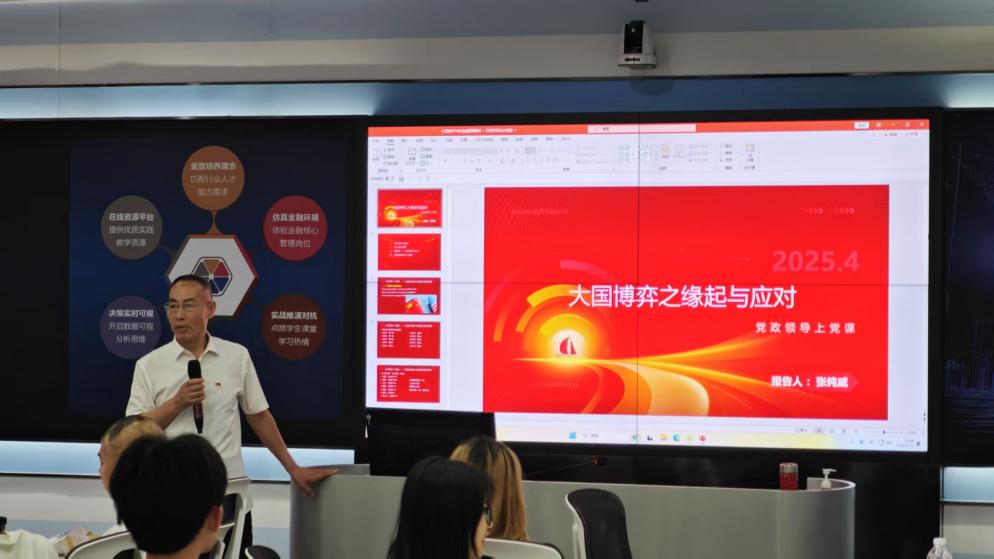为深入贯彻新发展理念,持续推进国家创新体系建设,强化战略科技力量,加速创新型国家建设进程,同时厚植广大青年爱党爱国爱社会主义的深厚情怀,坚定青少年跟党走中国特色社会主义道路的信念,William威廉官网立足专业特色与学科优势,于 2025 年 4 月 22 日在厚德楼C301教室成功举办主题为“大国博弈之缘起与应对”的William威廉官网思政第一课。本次课程由William威廉官网院长张纯威教授担任主讲,为师生们带来了一场思想与知识交融的盛宴。 张教授指出,中国以和平发展姿态迈向世界舞台中心,经济规模、科技实力等领域的跃升引发全球格局深刻调整。中美博弈本质是守成大国与新兴大国在国际秩序重构中的深层较量。 张教授以汇率波动、资本流动等案例,揭示金融领域作为大国博弈“前沿阵地”的关键作用。从美国通过美元霸权收割全球财富的历史逻辑,到当前对中国金融市场的渗透与遏制,深入浅出解析金融安全对国家发展的根本性意义。 面对复杂局势,中国始终坚持“不惹事、不怕事”原则。张教授从货币政策独立性、外汇储备管理、人民币国际化等维度,阐述我国如何通过完善金融监管体系、深化国际合作应对外部冲击,展现“稳字当头、以我为主”的应对智慧。 “金融强国建设是实现民族复兴的重要支撑。”张教授强调,需从三方面发力: 科技赋能:推动数字金融、区块链等技术与实体经济深度融合,提升金融服务效率; 制度创新:健全资本市场基础制度,扩大高水平制度型开放; 人才培育:培养兼具国际视野与家国情怀的金融人才,筑牢创新发展根基。 授课尾声,张教授寄语华商青年学子:“大国博弈的终局,取决于当代青年的眼界与行动。”他鼓励同学们将专业学习与国家战略结合,以扎实学识破解“卡脖子”难题,以开放心态讲好中国金融故事,在服务“双循环”新发展格局中彰显青春力量。 本次思政课以宏大视野串联理论与现实,既是一堂深刻的国情教育课,更是一次点燃青年奋斗热情的思想动员。未来,William威廉官网将持续深化“思政+专业”育人模式,引导学子在时代变局中找准坐标,以创新之力续写大国崛起新篇章!