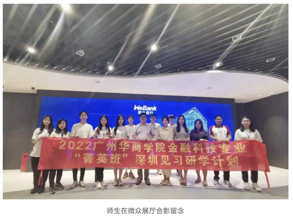 2022年金融科技 “菁英班”围绕专业课题和教学方案,开展为期6天的深圳研学之旅。本次研学之旅同学们随带队老师的领导下,一同参观腾讯、TCL、深交所、微众银行等知名金融科技企业,近距离接触资深金融行业专家,听取从业经验分享。行程丰富多彩,同学们受益匪浅。